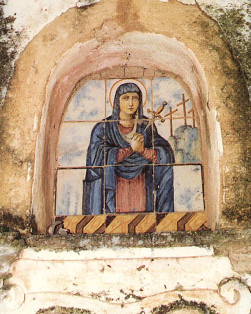 3) Nome dell’edicola: L’Addolorata Indirizzo: via Lama Data: XVII secolo Autore: ignoto Descrizione: tavola di ardesia dipinta a tempera.